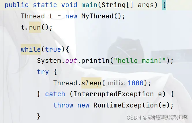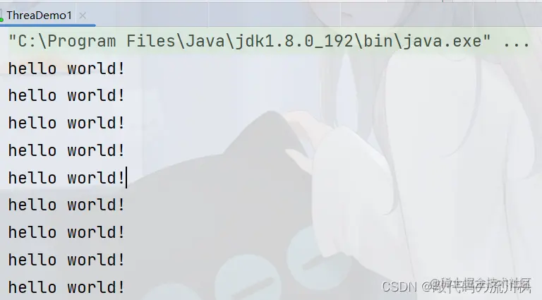 这里的是由 t.start()创建了一个新的线程,然后由线程负责执行t.run(),打印出hello world!
