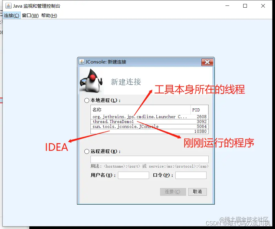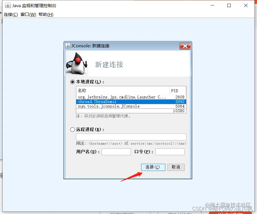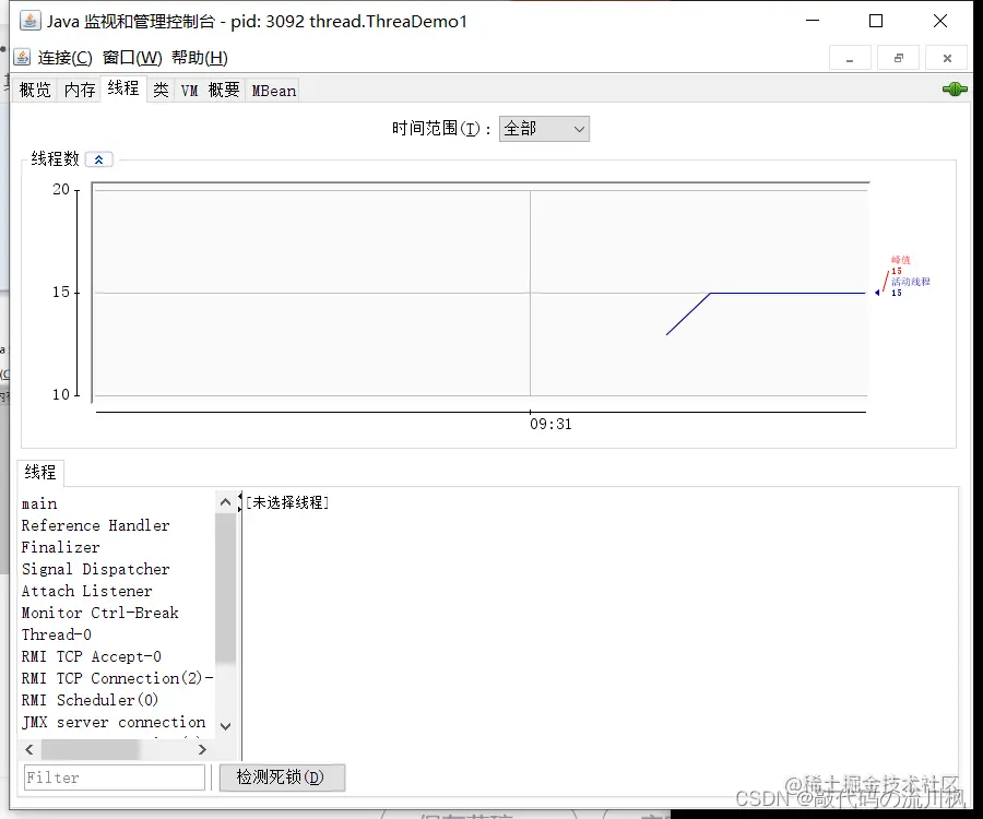我们可以使用jdk自带的工具jconsole查看当前的java进程中的所有线程