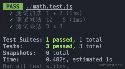 test("测试加法 1 + 2", () => {