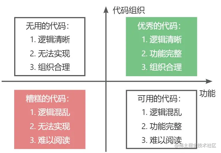 - 如果没有可用代码的逻辑组织,就不算功能的完成