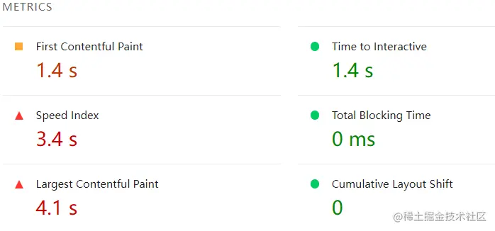 速度指数 (SI) 是一种页面加载性能指标,可显示页面内容的明显填充速度。这是显示页面可见部分的平均时间。以毫秒为单位表示,取决于视区的大小,分数越低越好。