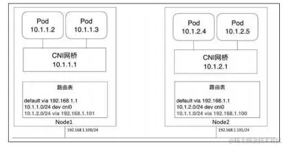 图3-7 Kubernetes的bridge跨机通信网络模型