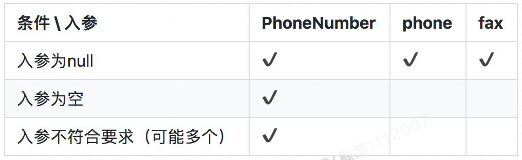}在日常编码中经常会出现,一般来说这种代码需要出现在方法的最前端,确保能够 fail-fast 。但是假设你有多个类似的接口和类似的入参,在每个方法里这段逻辑会被重复。而更严重的是如果未来我们要拓展电话号去包含手机时,很可能需要加入以下代码: