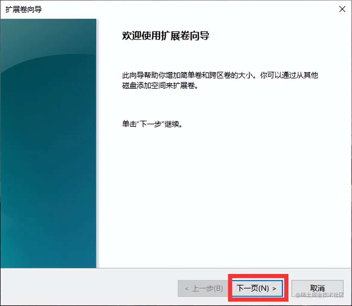 **步骤3:**进入【扩展卷向导】界面后,点击【下一页】。