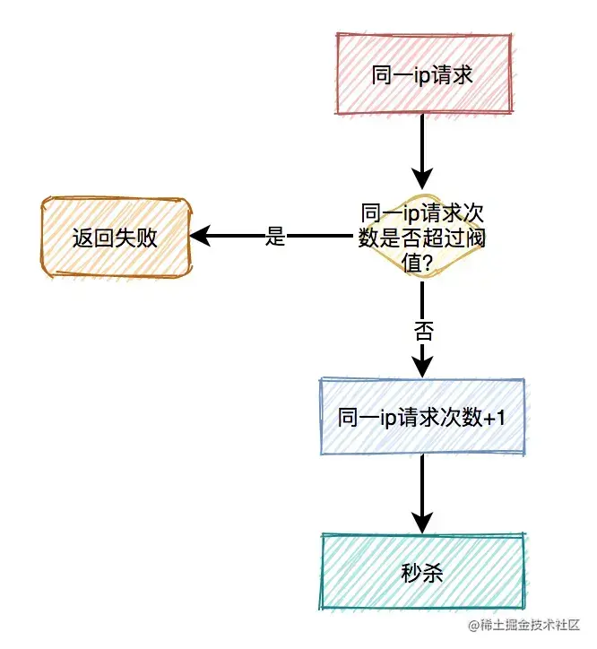 但这种限流方式可能会有误杀的情况,比如同一个公司或网吧的出口ip是相同的,如果里面有多个正常用户同时发起请求,有些用户可能会被限制住。