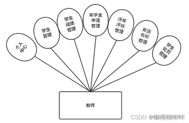 - 教师;教师在校内评奖评优系统中主要拥有的功能有:个人中心、学生管理、学生成绩管理、奖学金申请管理、评奖评优管理、奖项名称管理、学生处罚管理
