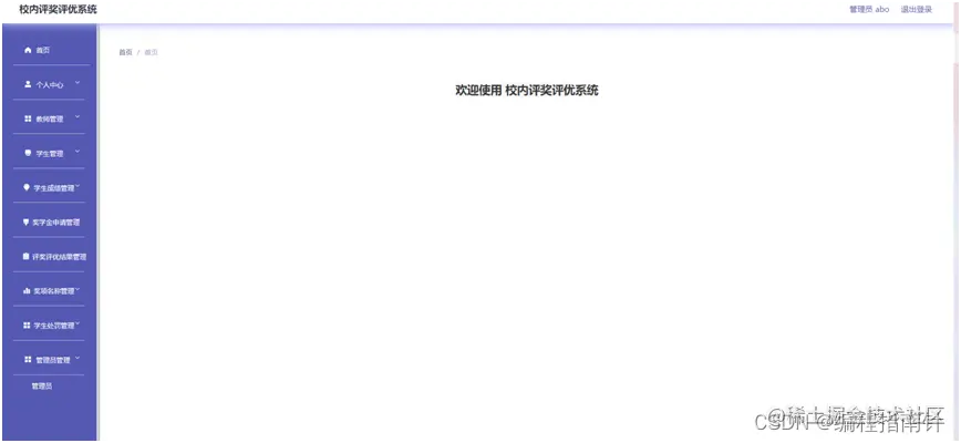 根据校内评奖评优系统在实际应用中,采用前后端分离的开发方式,后台开发使用Springboot开发接口,前端开发使用Vue+EelementUIg后台基于将主要用户划分为管理员、教师、学生三类。