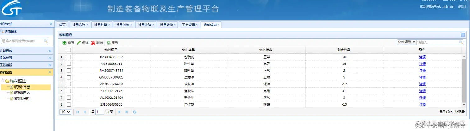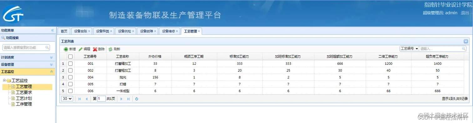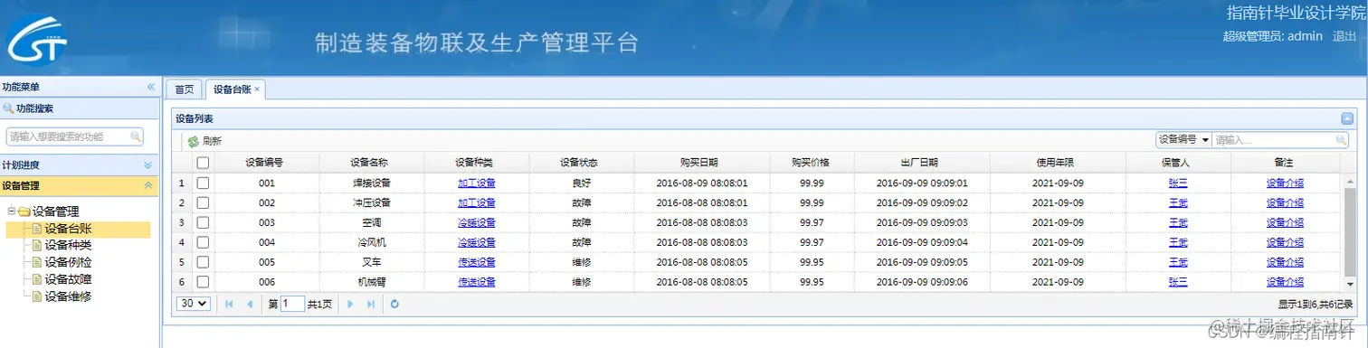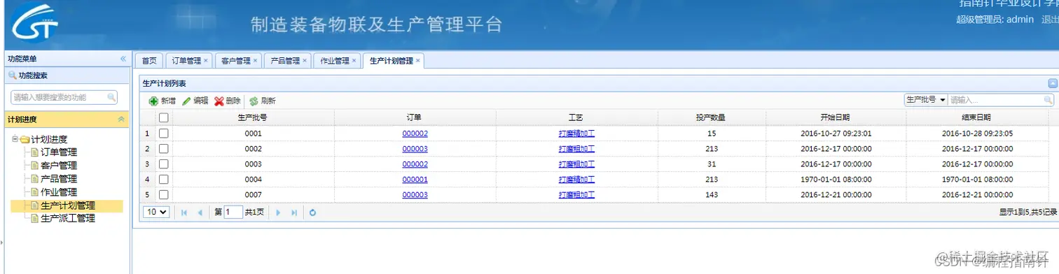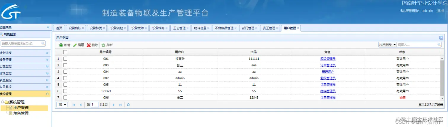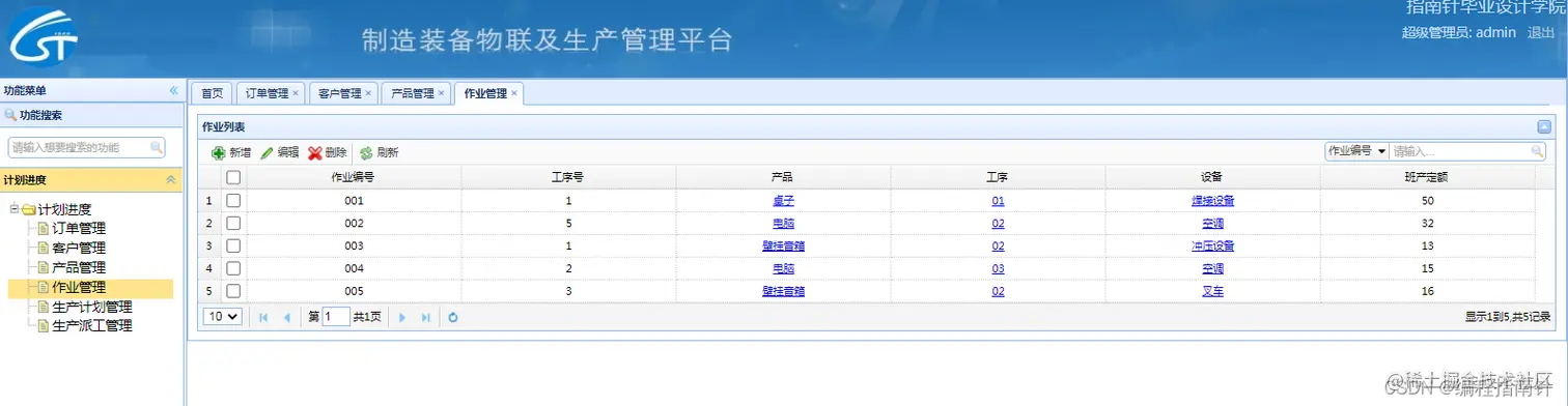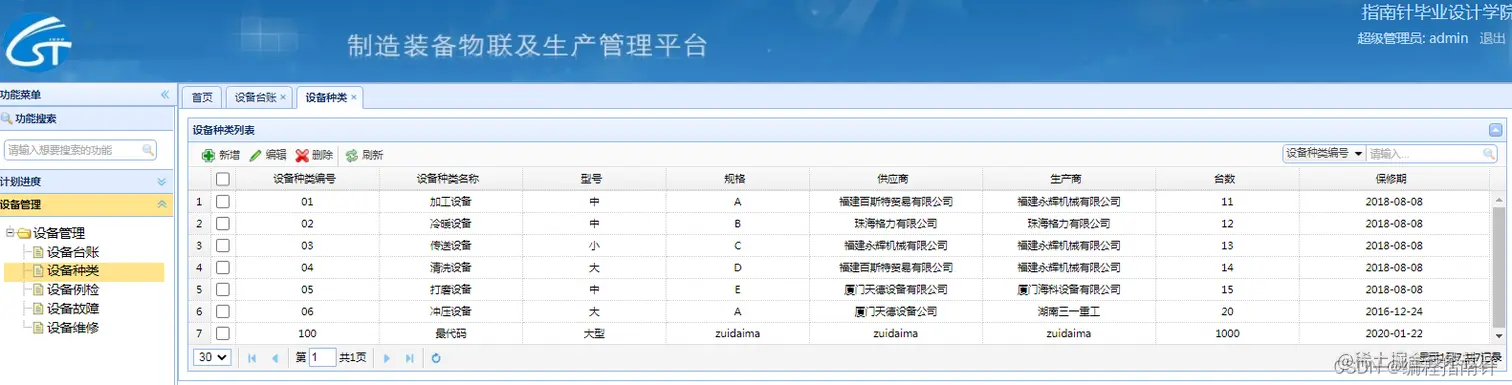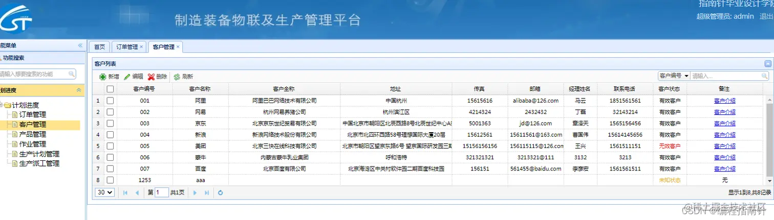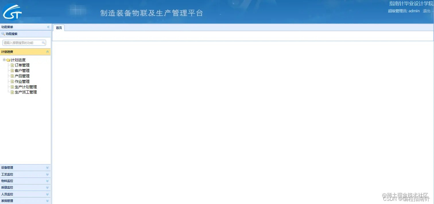 这是一个生产管理ERP系统。依托科技计划重点项目“制造装备物联及生产管理系统研发”,主要包括:计划进度、设备管理、工艺监控、物料监控、人员监控、质量监控、系统管理7大模块。系统采用SSM框架开发实现,前端主要基于JQUERY-UI实现页面布局展示。