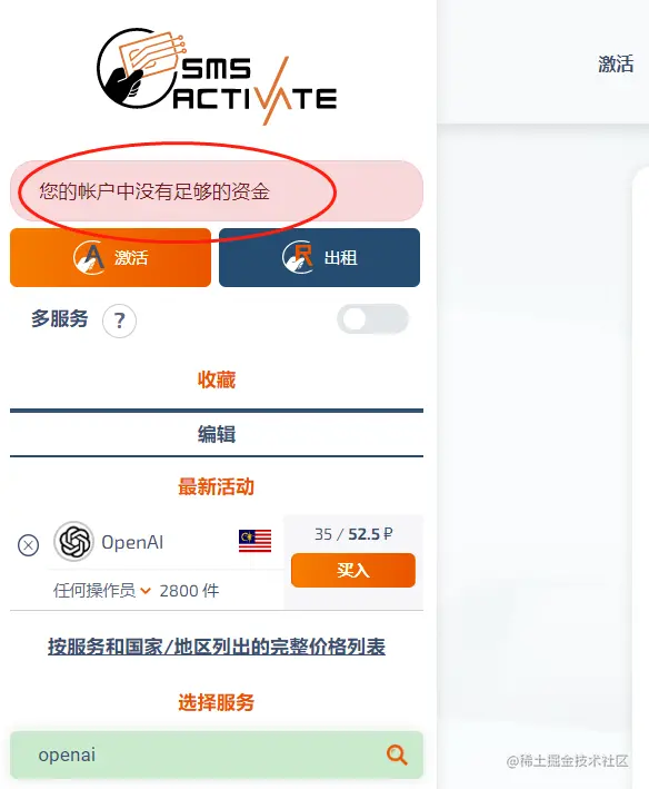访问sms-activate sms-activate.org/,搜索OpenAi,可…