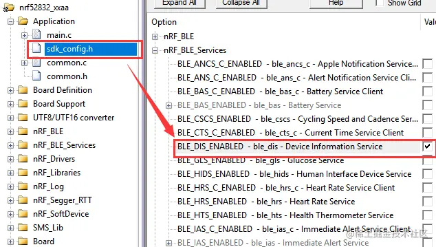 在nRF_BLE_Services中勾选DIS服务