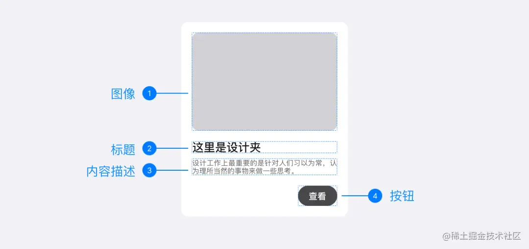 当卡片中有标题、内容、图片、按钮等多种元素时,需要考虑标题与图片的位置关系、标题和内容的长短等。