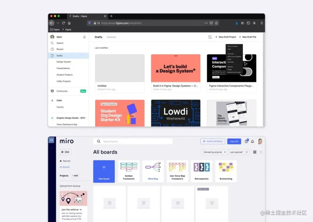 卡片是灵活的组件,可以组合成不同类型的小组件。Figma、Framer等协作工具使用卡片展示项目和文件。