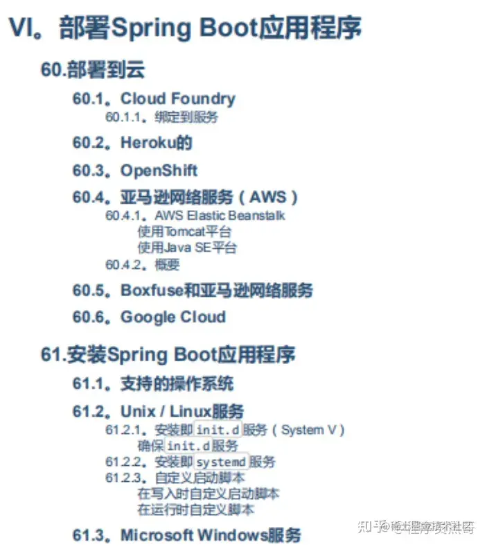 Spring Boot的灵活打包选项在部署应用程序时提供了大量选择。您可以将Spring Boot应用程序部署到各种云平台,容器映像(如Docker)或虚拟真实机器。本节介绍一些更常见的部署方案。
