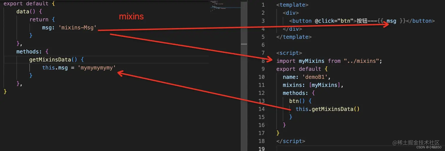 6、mixin混入传参 同组件为响应式,非同组件不为响应式