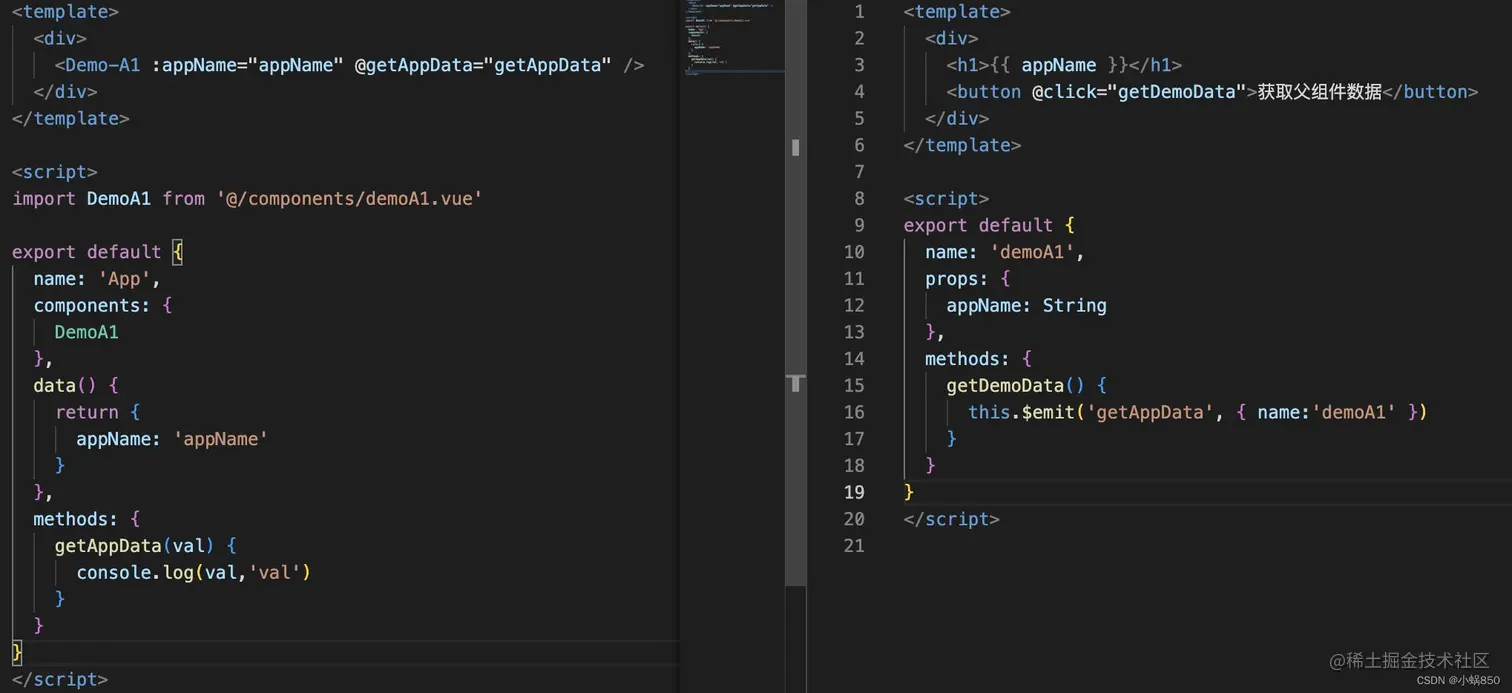 父向子传递数据是通过 props,子向父是通过 events($emit);