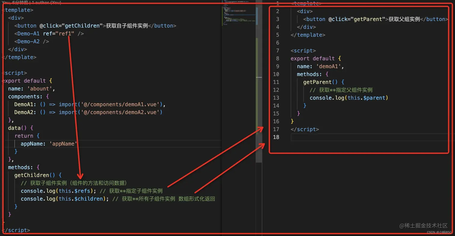 2、children / $ref 获取 子 / 父组件实例(方法和访问数据)