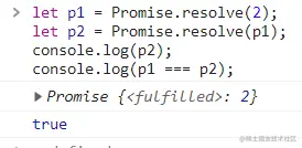 对这个静态方法而言,如果传入的参数本身是一个期约,那它的行为类似于一个空包装,因此,Promise.reslove()方法可以说是一个幂等方法。如下图所示: