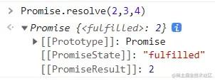 resolve()函数接收一个参数,作为期约的结果。即PromiseResult的值。只接收第一个参数,多余的无效。