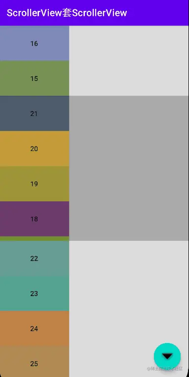 我们从一个最常见的问题开始说起,如果两个ScrollerView套在一起会发生什么?很简单,套在里面的ScrollerView直接没法滑动了,即使它的内容展示不全: