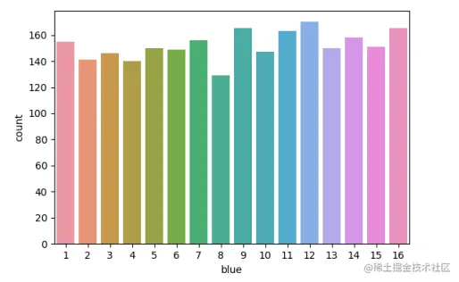 这里根据蓝色球各号码出现的次数,作了张直方图,可以很直观到蓝色球各号码出现的频率。