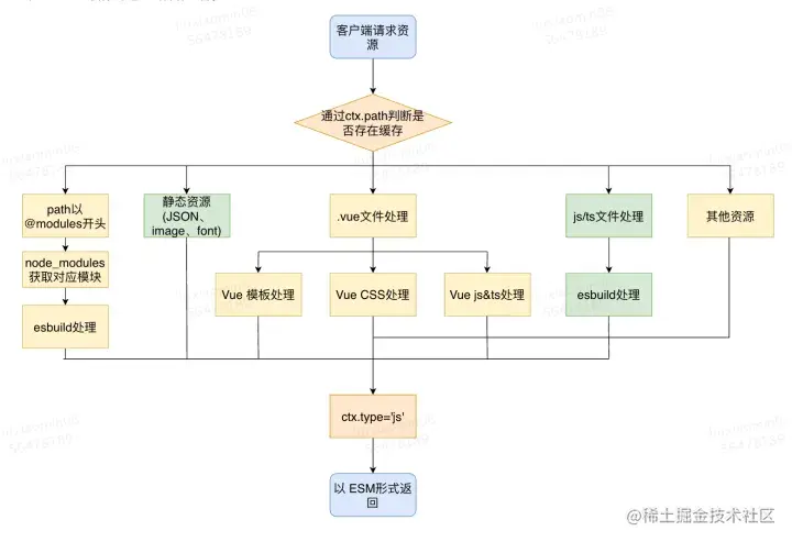 - 预编译:npm 包这类基本不会变化的模块,使用 Esbuild 在 「预构建」 阶段先打包整理好,减少 http 请求数