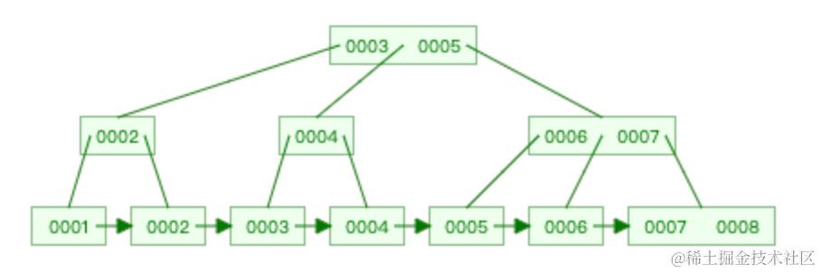 此外每一个叶子结点都有一个指向相邻叶子结点的指针,形成一个有序链表