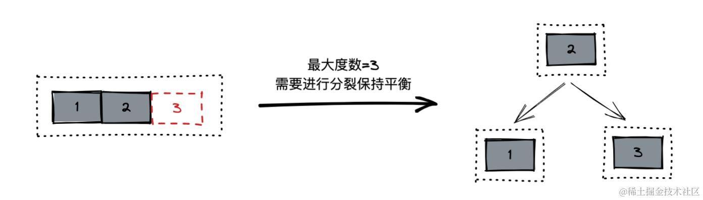 分裂:当一个节点的关键字数量等于最大度数时,节点需要分裂来保证平衡