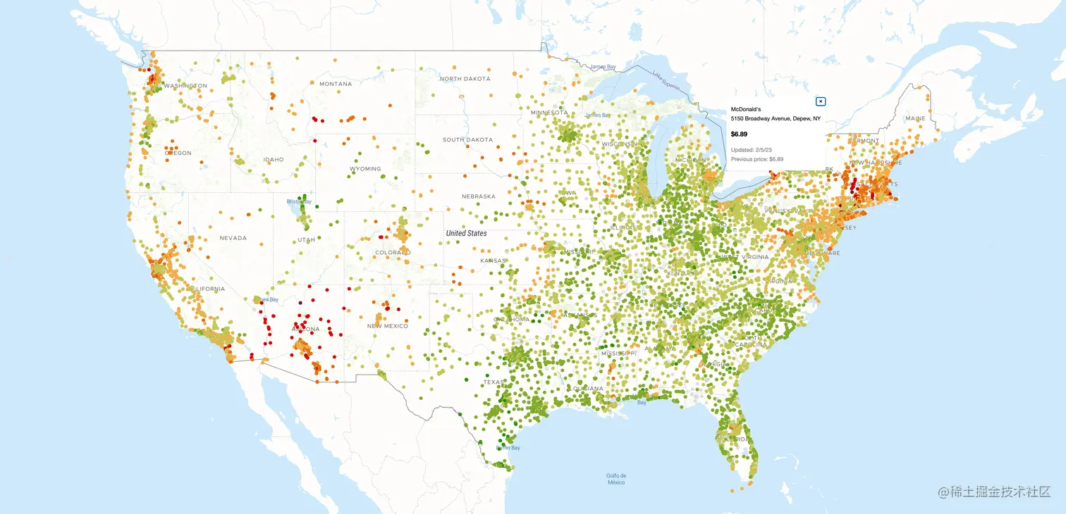 这个网站很有趣,可以跟踪美国每家麦当劳的巨无霸汉堡的价格。🍔可以看到距离你最近的巨无霸卖多少钱,价格相差高达77%!