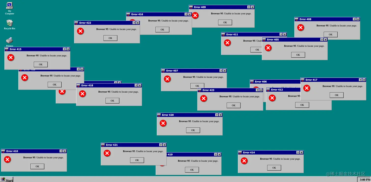 这个项目很有趣,就是一个静态单页面,Windows 95 主题的 404 页面。可以用到你自己的网站项目上,交互也很有趣,模拟了 Windows 的无限错误弹窗!项目是开源的。