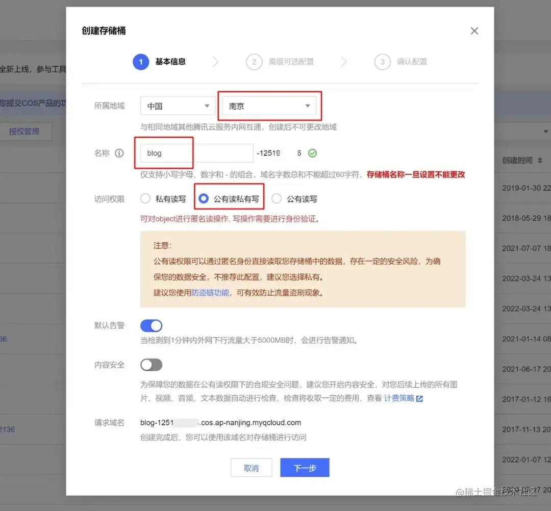 注册腾讯云账号,创建 COS 存储桶,选择公有读私有写。创建存储桶后可以在存储桶里打开防盗链设置。