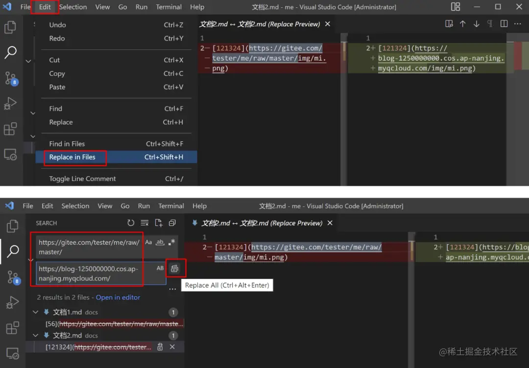 4、全局替换链接域名: