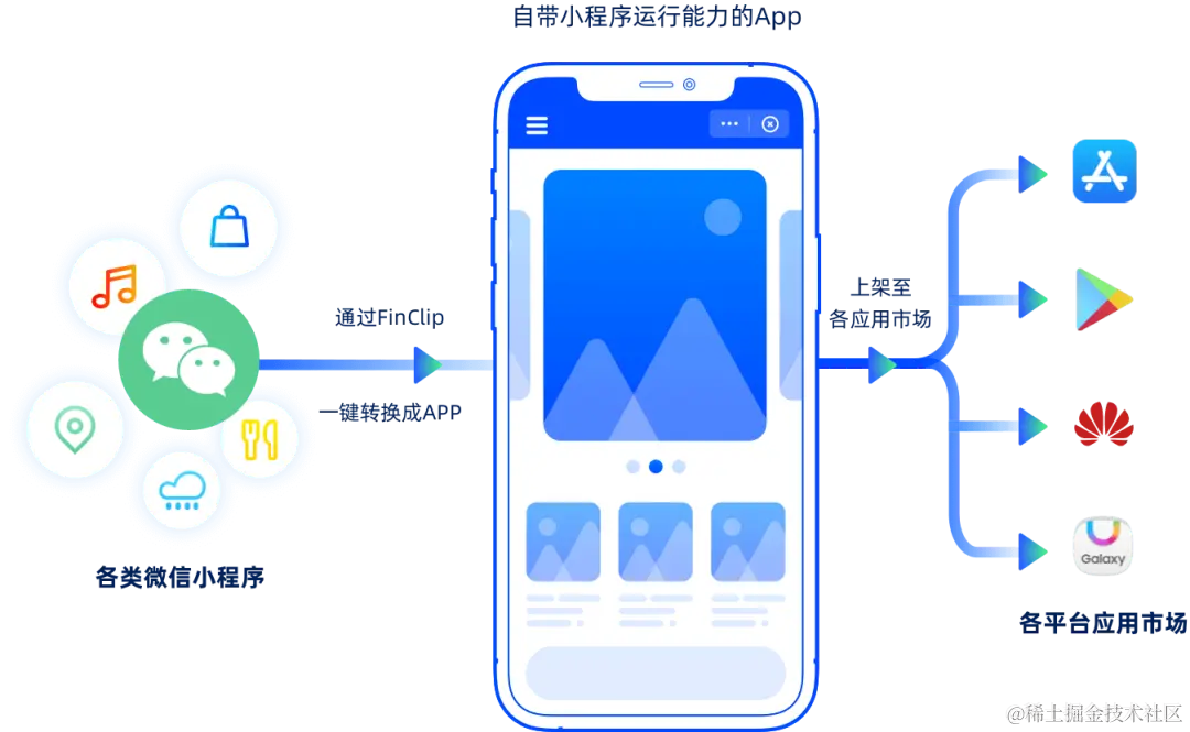 同时,它还支持 小程序一键转换成 App,可以将已有小程序代码导出为 IOS 与 Android 中可用的工程文件,并上架至各应用市场 。由于导出的工程文件自动集成了 FinClip SDK ,所以直接拥有小程序的运行能力,后续可在这个 APP 上继续上架更多小程序,自建自己的小程序生态。
