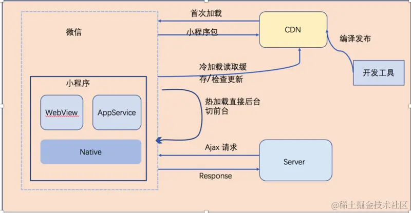 3.原生版本迭代更为便捷 小程序选择的是webview+原生组件的形式,hybrid方式,既享受到了webview页面的低门槛和在线更新,有可以使用部分流畅的native原生组件,并且最重要的是空对开发的内容进行一定程度按的管控,同时在安全问题从设计层面就予以了解决。