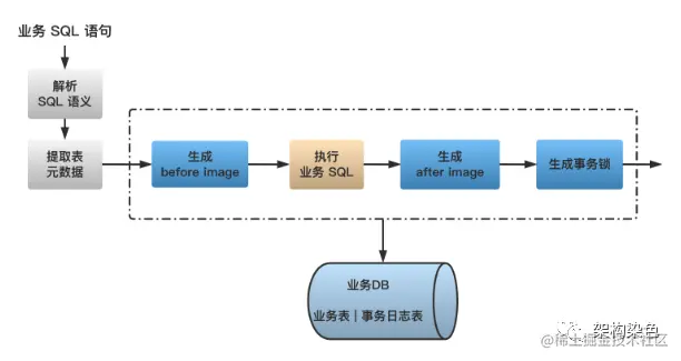 在一阶段,Seata 会拦截“业务 SQL”,首先解析 SQL 语义,找到“业务 SQL”要更新的业务数据,在业务数据被更新前,将其读出保存成“before image”,然后执行“业务 SQL”更新业务数据,在业务数据更新之后,再将其读出保存成“after image”,之后生成事务行锁信息并向 TC 申请持有锁。以上操作全部在一个数据库事务内完成,这样保证了一阶段操作的原子性。