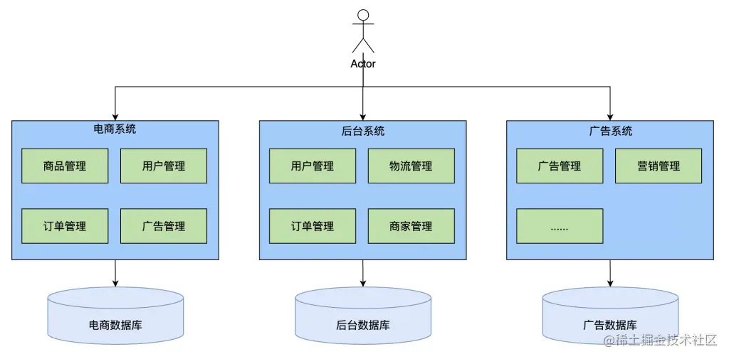 如图的项目可以分为:电商业务线,后台业务线,广告业务线