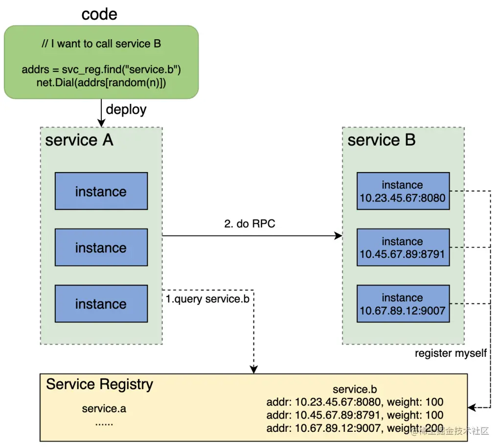 而且一个服务包含多个实例,指定一个IP地址显然是不够的
