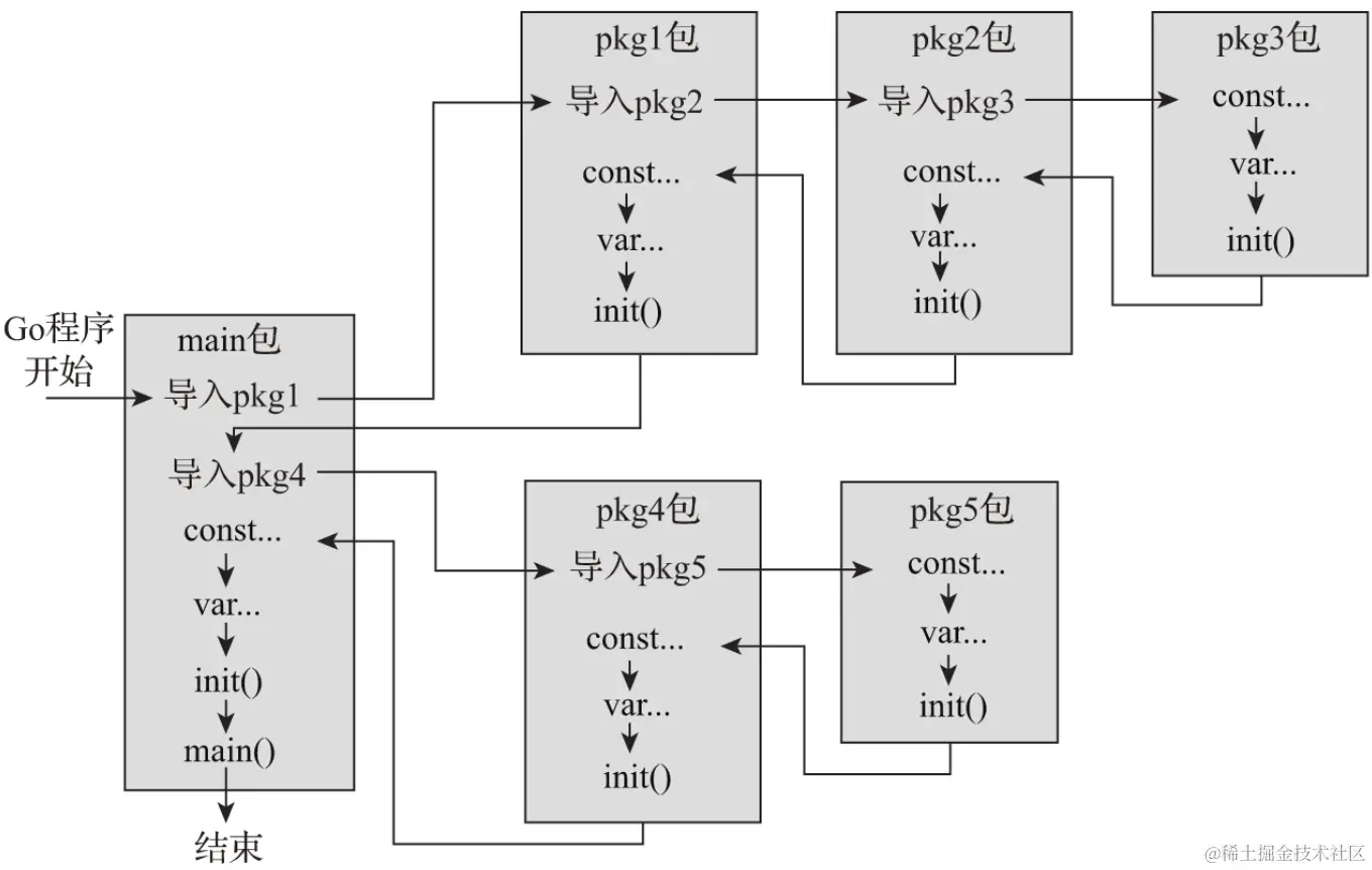 在Go包这一基本单元中分布着常量、包级变量、函数、类型和类型方法、接口等,要保证包内部的这些元素在被使用之前处于合理有效的初始状态,尤其是包级变量,一般通过包的init函数来完成这一工作。