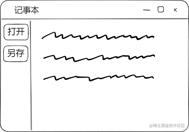 按照上面的功能需求定义,就可以给记事本定个草图啦,长这样