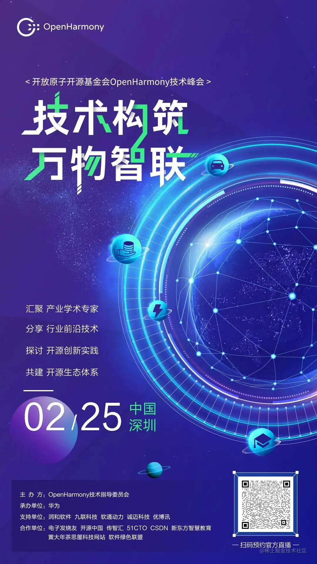 重磅官宣,OpenHarmony技术峰会来了 OpenHarmony开发者 2023-02-14 701 阅读1分钟 技术构筑万物智联 创新使能行业发展 2月25日 第一届开放原子开源基金会OpenHarmony技术峰会即将启幕 众多行业大咖齐聚深圳 开启一场“技术硬核”探索盛宴 亮点拉满,我们共同期待