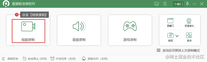 **步骤1:**打开数据蛙录屏软件,在主界面中点击【视频录制】。
