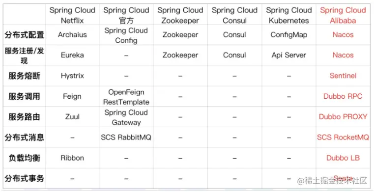 作为 Spring Cloud 体系下的新实现,Spring Cloud Alibaba 跟官方的组件或其它的第三方实现如 Netflix, Consul,Zookeeper 等对比,具备了更多的功能: