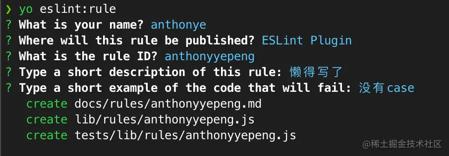 相信如果有写过 VSCode 插件的同学应该对 Yeoman 不陌生,ESLint 也有提供基于 Yeoman 的一套脚手架用于生成模版。