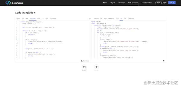 如你所见, CodeGeeX 可以以高精度的形式翻译所有你的代码片段到另一个语言