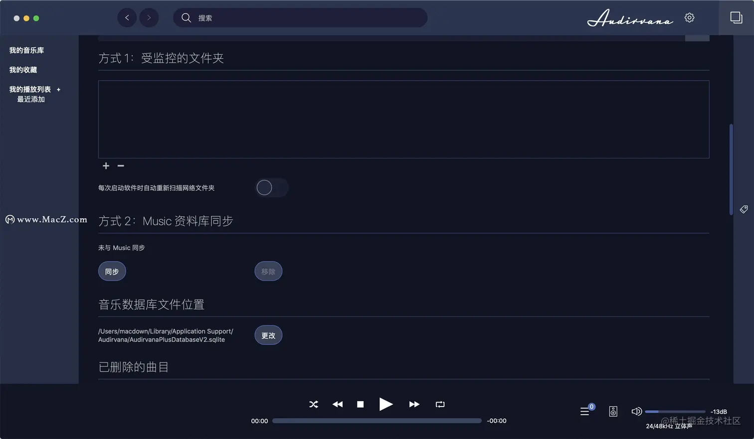 Audirvana Mac版是一款强大的无损音乐播放器,接连结到系统的音效输出,故在设定上也与Mac OS X的系统环境设定彻底分家,纵使播放的是普通MP3,音质上也有所提升。同时亦由于Audirvana直接连结到系统的音效输出,其他系统音效将会没有声 音。取样率(Sample Rate)会自动调整,并从记忆体取得播放内容,因此可以把来自处理器和硬碟的影响减至最低。播放时支援Playlist,也可使用Apple IR进行遥控。对音乐有要求的朋友不妨试试。