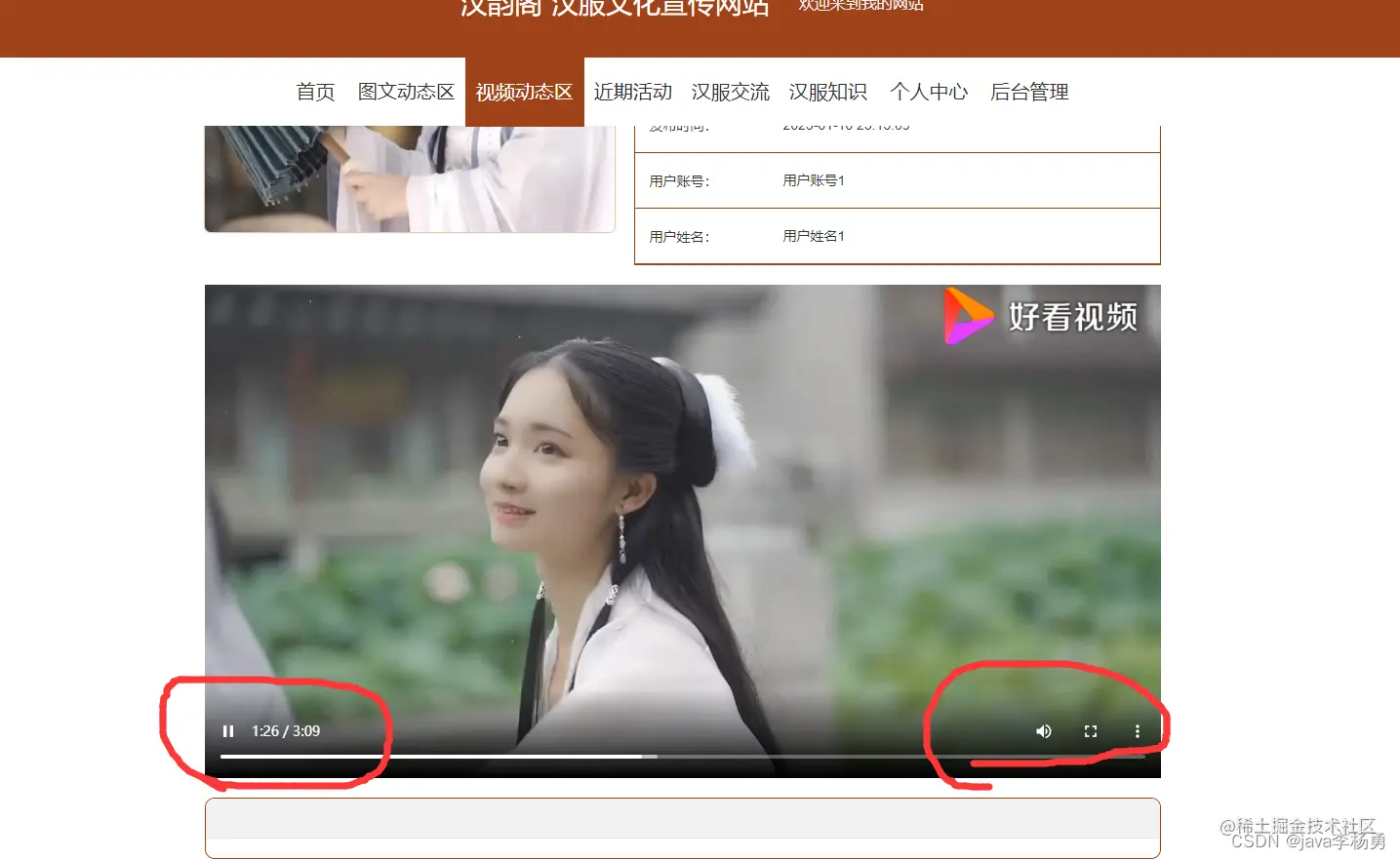 后台可以上传图片以及视频等,这里可以查看详情以及播放视频。