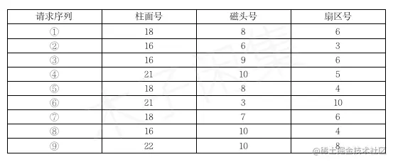 在磁盘调度管理中,应先进行移臂调度,再进行旋转调度。假设磁盘移动臂位于 20 号柱面上,进程的请求序列如下表所示。如果采用最短移臂调度算法,那么系统的调度序列应为( )。