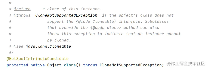 不过其实在Java当中已经提供了clone方法,它是一个Object的本地方法