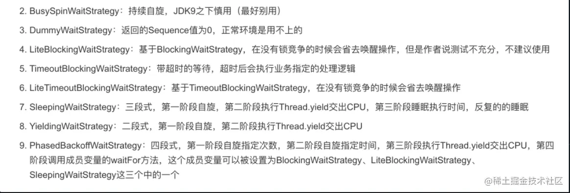 在Disruptor中可以指定一些消费者waitStrategy来制定当无任务时 消费线程的情况