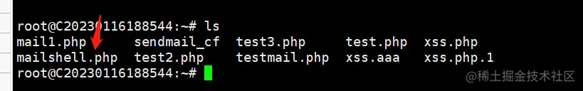 运行完之后,我们在root目录下确实发现了一个名为testmail.php的文件。