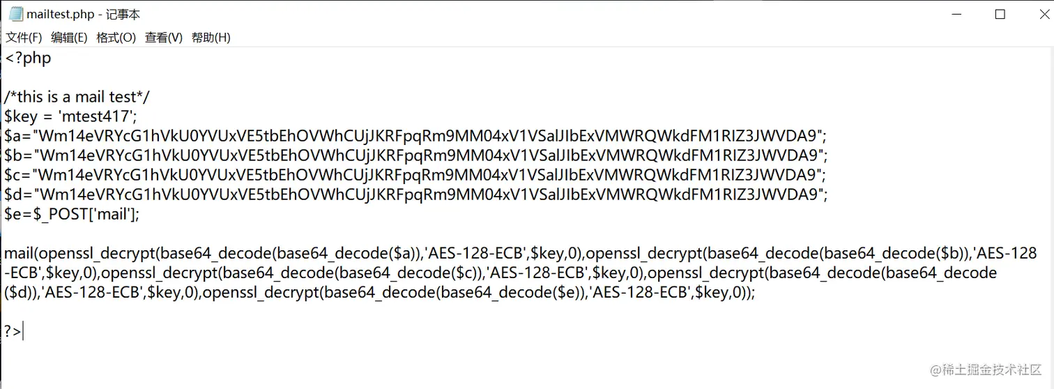 上文提到了各种mail()的骚操作,我在学习复现的过程中除了感到NB无话可说。它的种种特性不禁让我思考,它是否有成为后门的潜质,它在正常的linux环境就可以实现日志getshell以及任意文件读取。在其它特定情况下它也可以无回显进行命令执行。并且它是一个再正常不过的函数,一般的开发和安全人员可能都不会觉得这样一个人畜无害的邮件发送函数能造成什么危害。抱着这样的心态,我先简单的实现了这么一个功能: